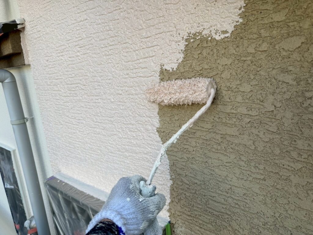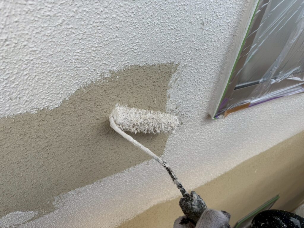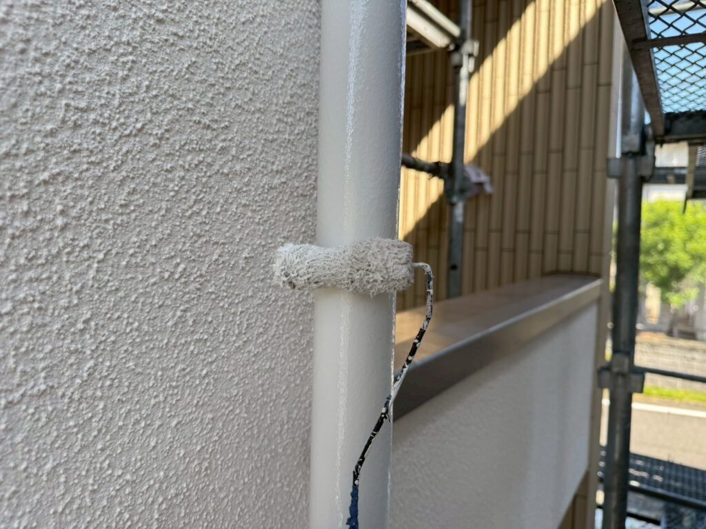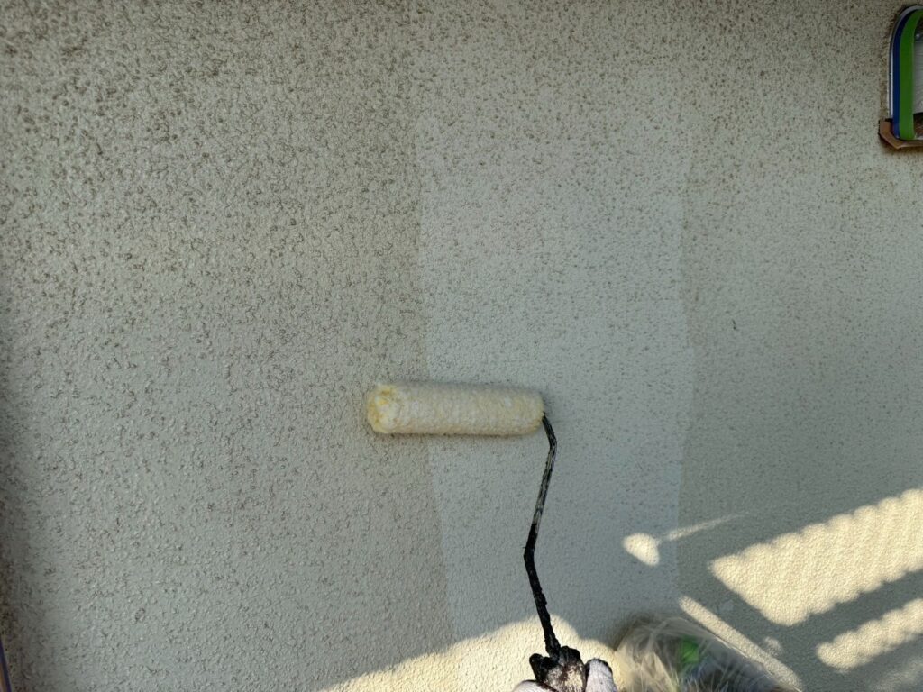 外壁塗装の仕上げになります。ムラや塗り残りなく、仕上がりが美しくなるように意識して行います!使用した塗料はアイカ工業/ジョリパッドフレッシュになります!