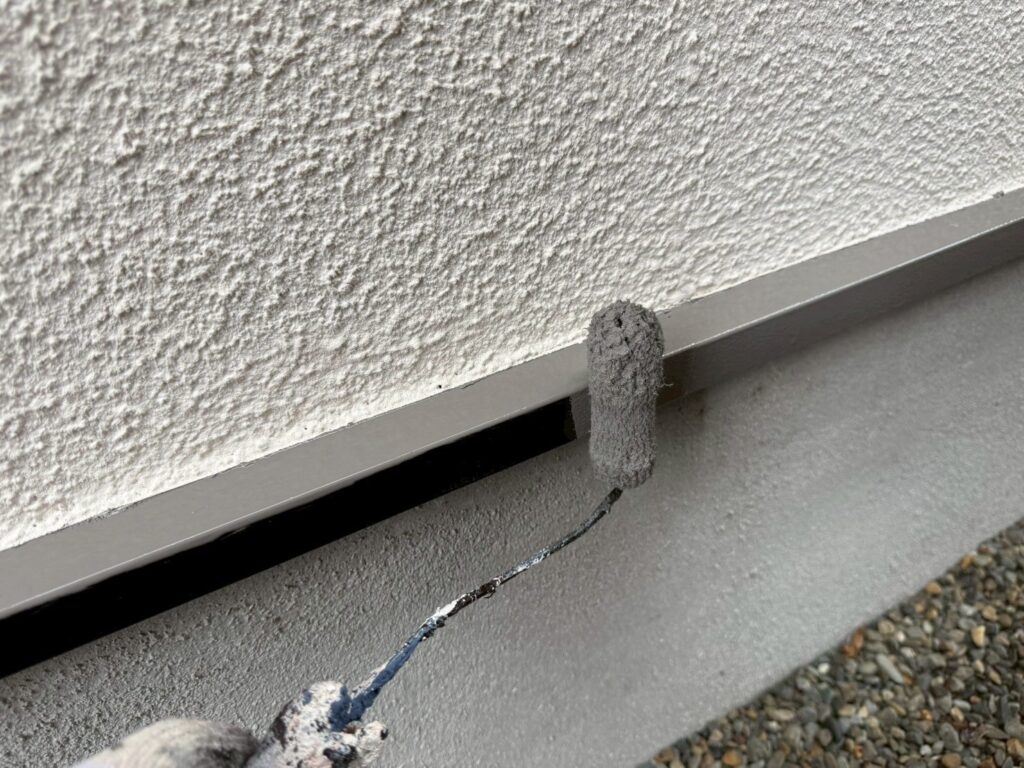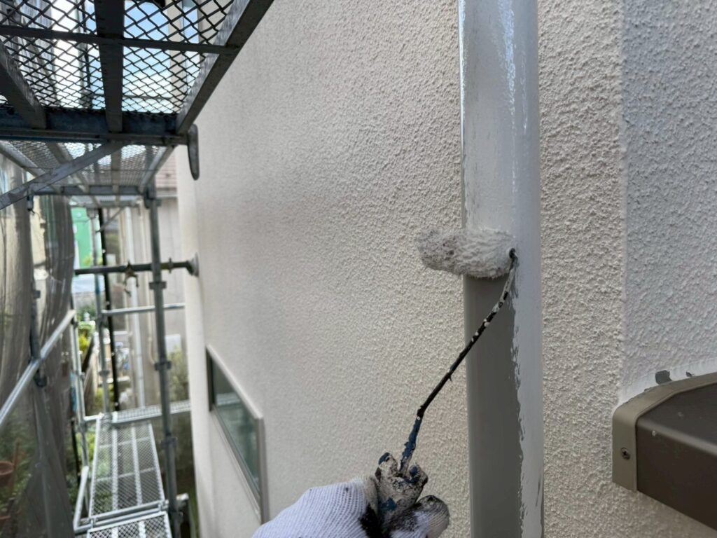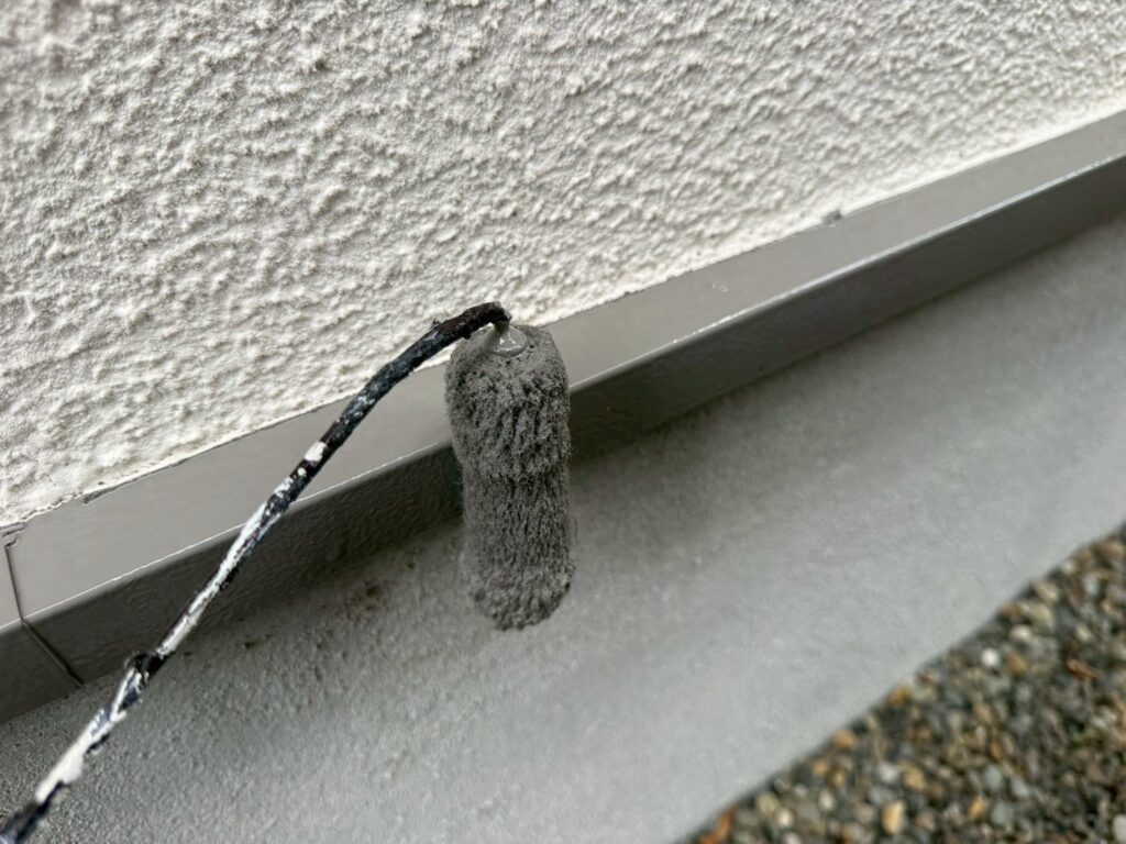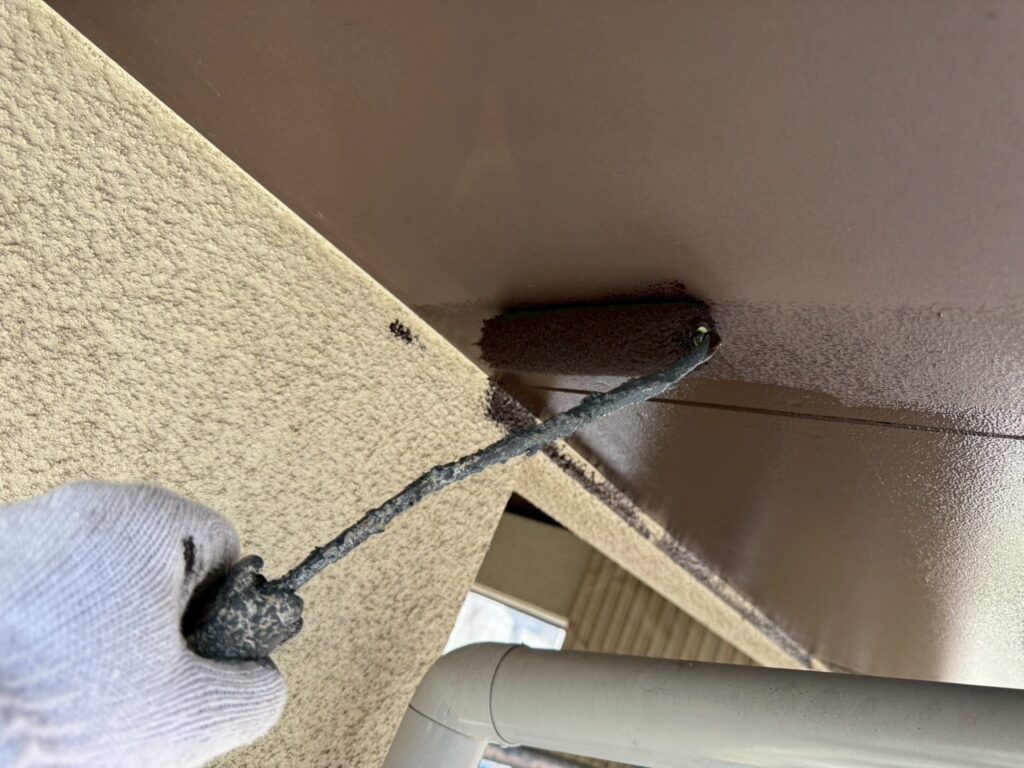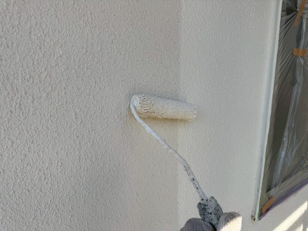 外壁塗装の仕上げになります。ムラや塗り残りなく、仕上がりが美しくなるように意識して行います!使用した塗料はアイカ工業/ジョリパッドフレッシュになります!