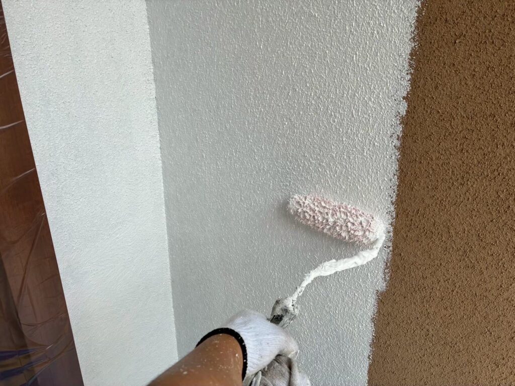 高圧洗浄や下地処理を終えた後に最初に塗料を塗る作業で、上から塗っていく中塗りや上塗りを、しっかりと塗装面に付着させるための塗料です。下塗りをしっかり塗ることで、耐久性、仕上がりに大きく差が出ます!