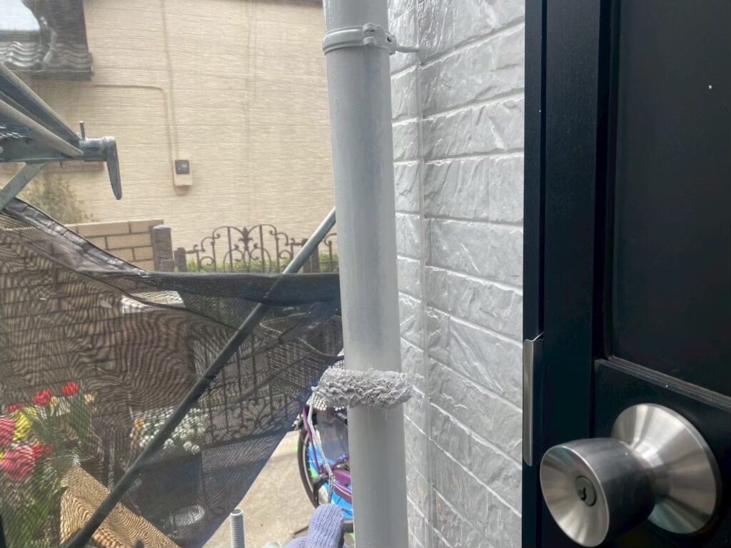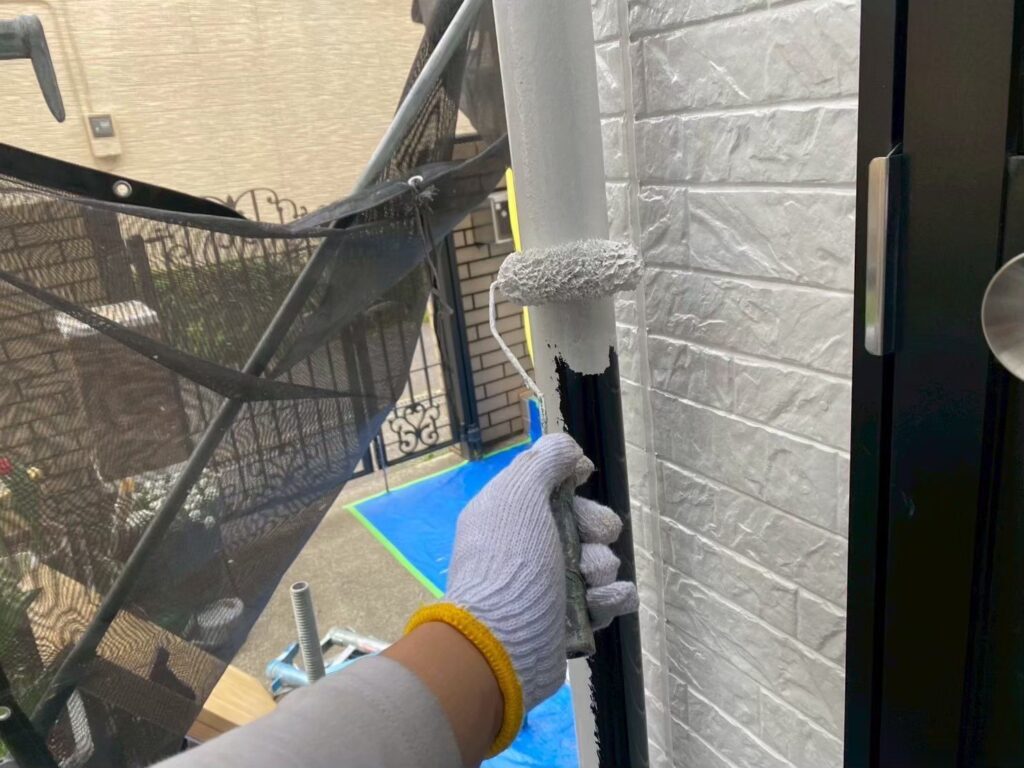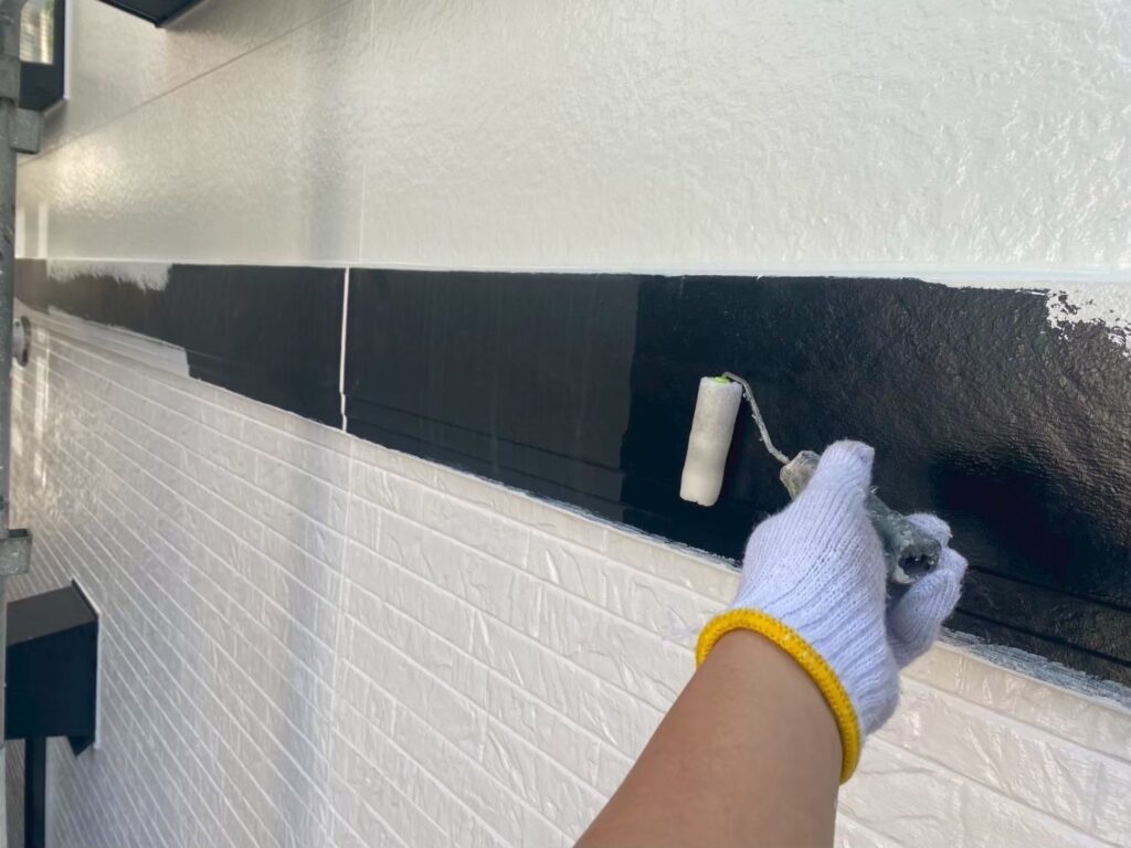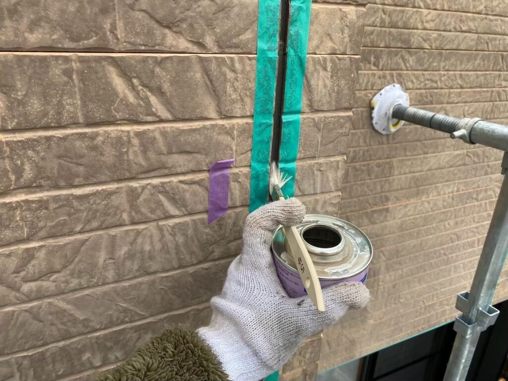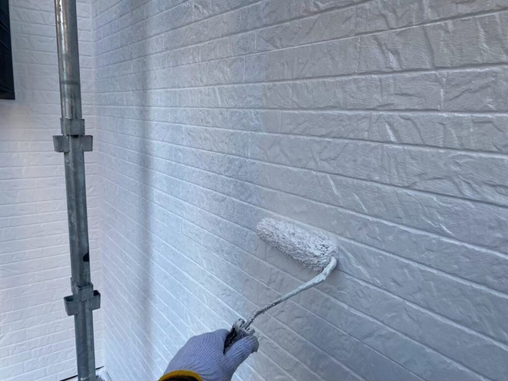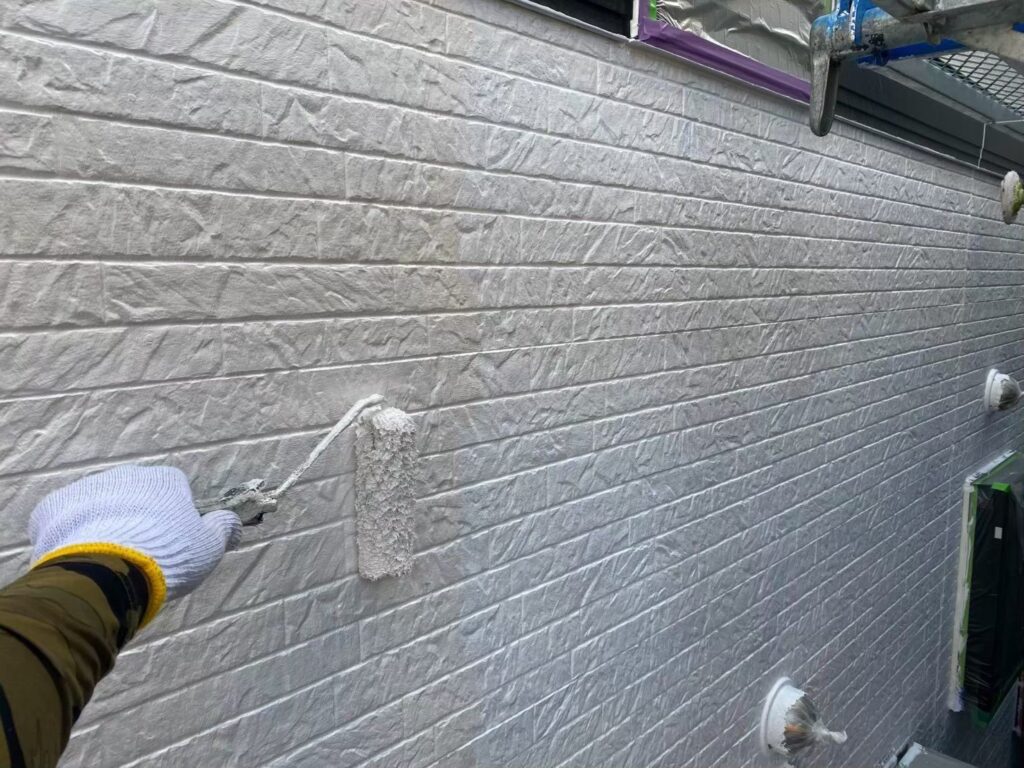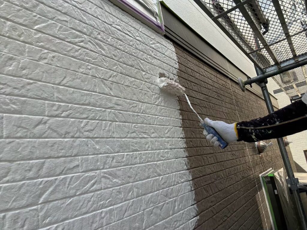 サイディング面の下塗り材はエスケー化研の水性SDサーフエポプレミアムです。下地調整機能もある為、細かいクラック(ヒビ)も塞いでくれます!