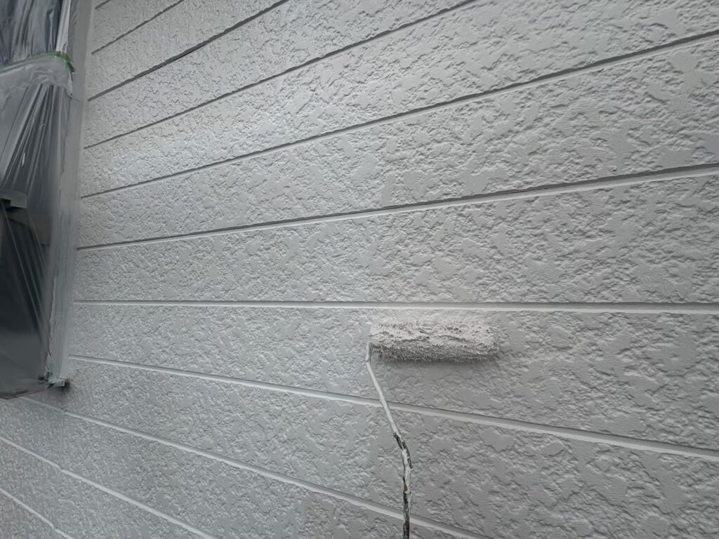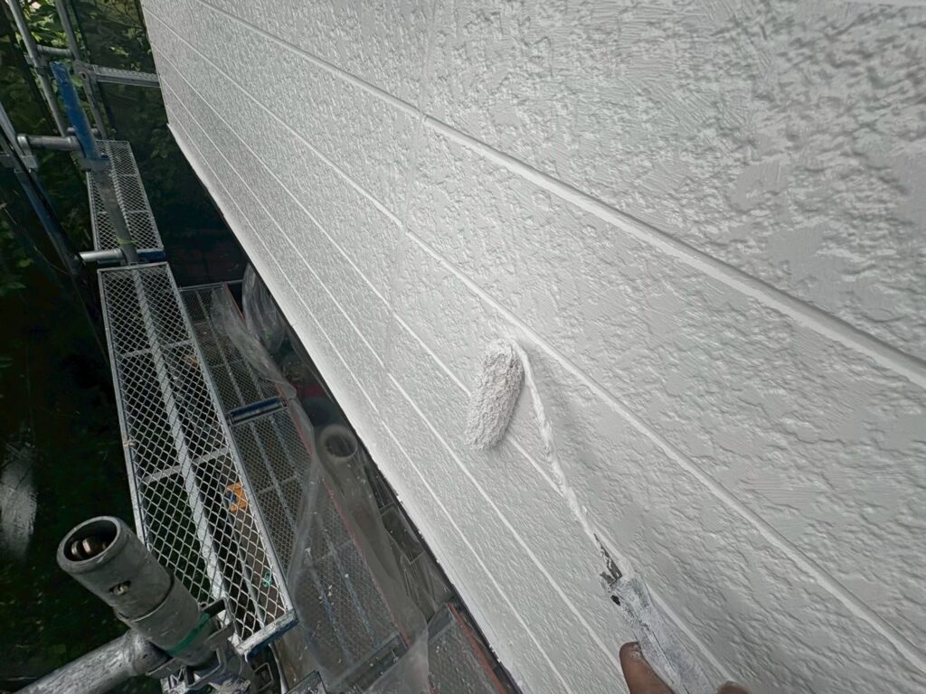 塗料は、中塗りと同じく、エスケー化研/プレミアムシリコンを使用しました。