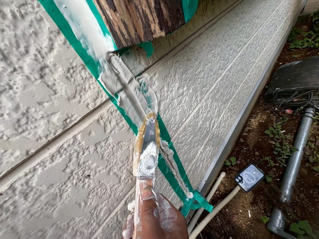 シーリング・コーキング・目地などと呼ばれています。 雨漏りに繋がりやすくサイディングの割れや浮きにも繋がり重要な箇所となります。ヒビや剥がれが劣化のサインとなります!
