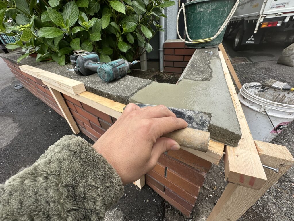 こちらの工程は、非常に重要な部分となりましてモルタルの形を決める作業になります。