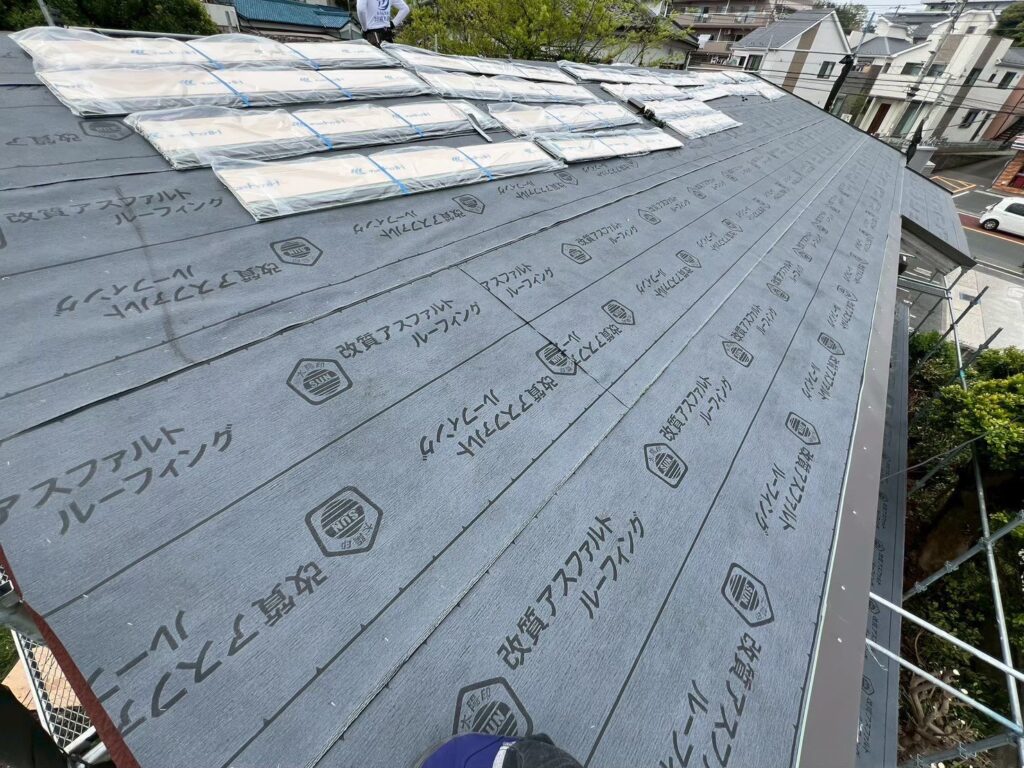 お客様が15年保てば良いとのことでしたので、ルーフィングシートはコストパフォーマンス重視の改質アスファルトでご提案させていただきました! |
