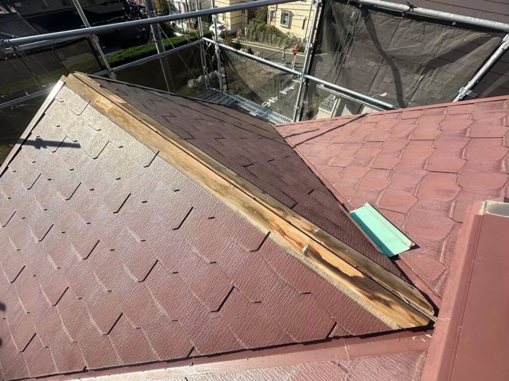 既存の棟下地は杉製で、杉製は耐久年数が約10年~15年となります。