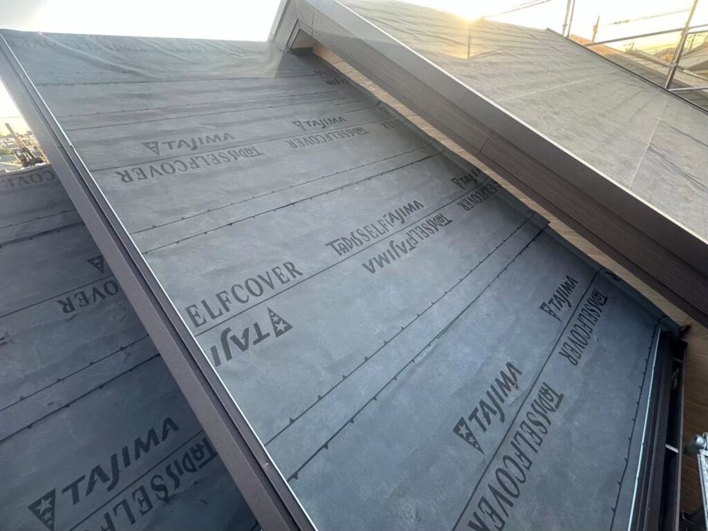 2.ルーフィング張り(防水シート)・役物加工(唐草,ケラバ,谷,棟下地)