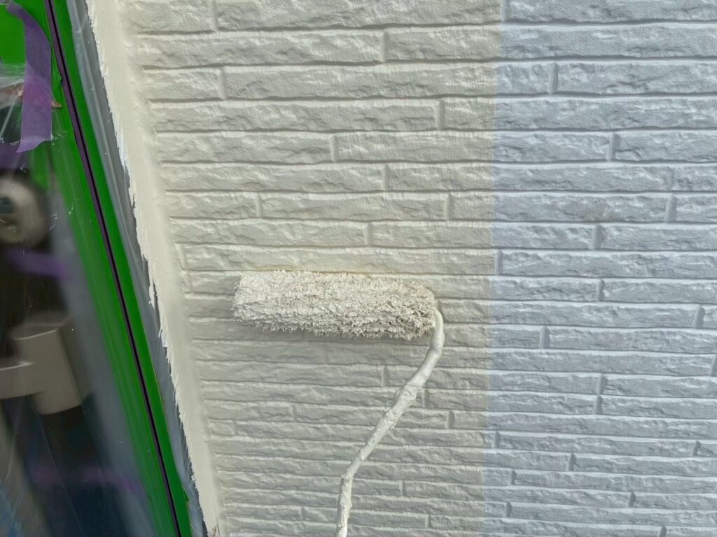 高圧洗浄や下地処理を終えた後に最初に塗料を塗る作業で、上から塗っていく中塗りや上塗りを、しっかりと塗装面に付着させるための塗料です。下塗りをしっかり塗ることで、耐久性、仕上がりに大きく差が出ます!