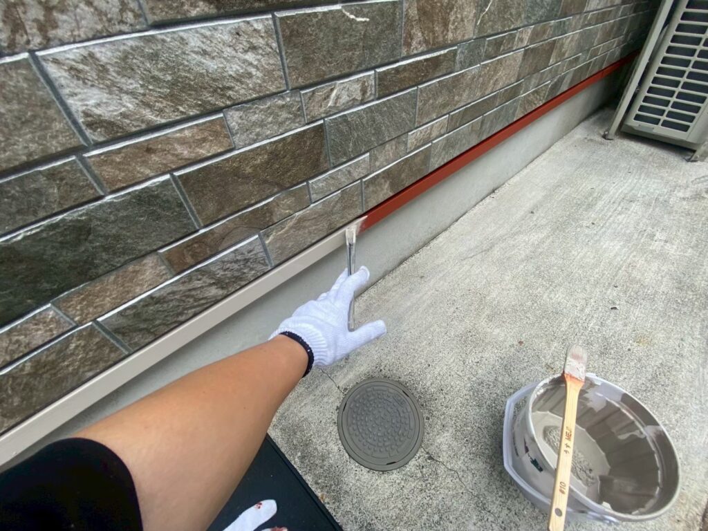 ◯目地打ち替え シーリング材:サンライズ/SRシールH100 オート化学工業/オートンイクシード(色・ビンセントグレー) ◯外壁塗装 下塗り材:エスケー化研/水性SDサーフエポプレミアム 中塗り材・上塗り材:エスケー化研/エスケープレミアムシリコン ◯付帯部塗装 [雨樋・破風・スリムダクト] ロックペイント/ユメロック(色・N90) [軒天] 日本ペイント/水性ケンエース(色・N90):2回塗り [バルコニー防水] カナエ化学工業/カナエ水性FRPトップ(FRP防水用トップコート) [水切り・シャッターボックス] ロックペイント/ユメロック(色・19-65B):錆止め含む3回塗り |