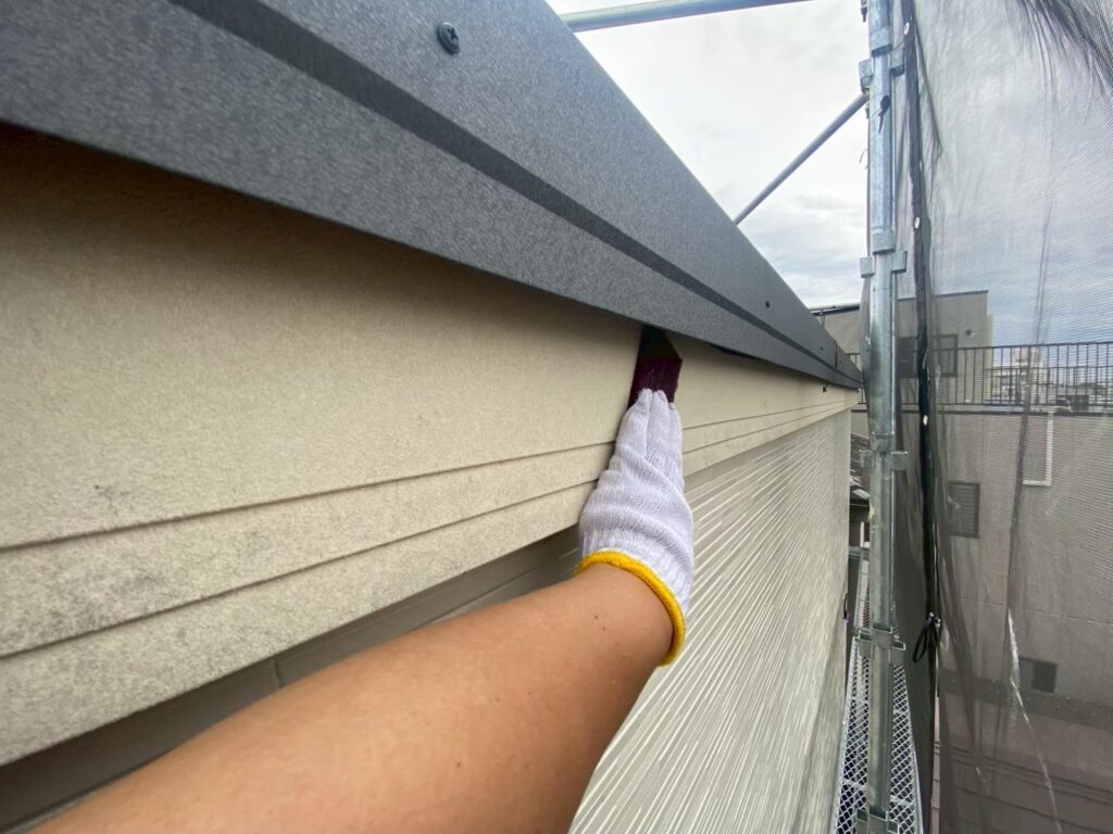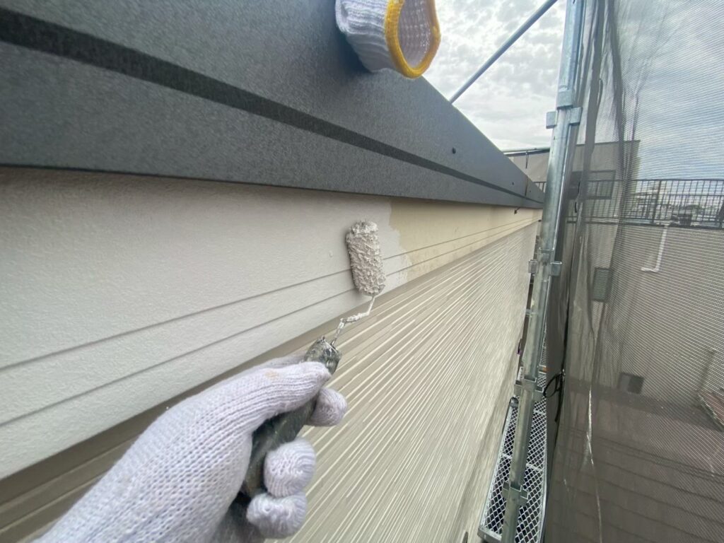 サイディング面の下塗り材はエスケー化研/水性SDサーフエポプレミアムです。下地調整機能もある為、細かいクラック(ヒビ)も塞いでくれます!