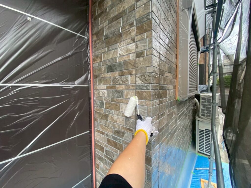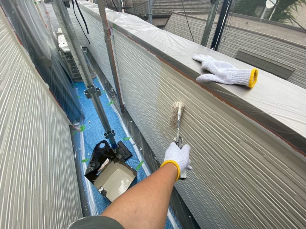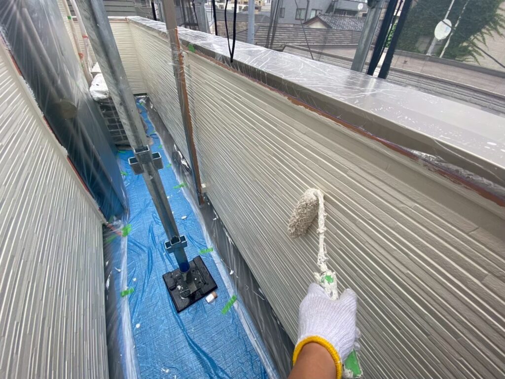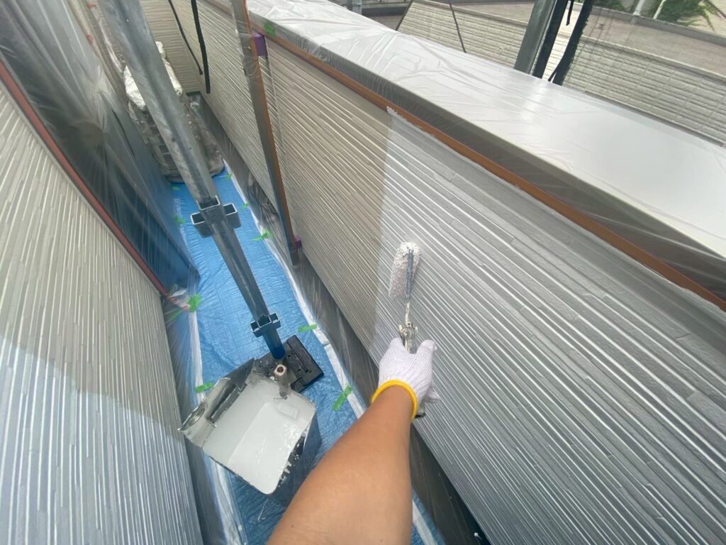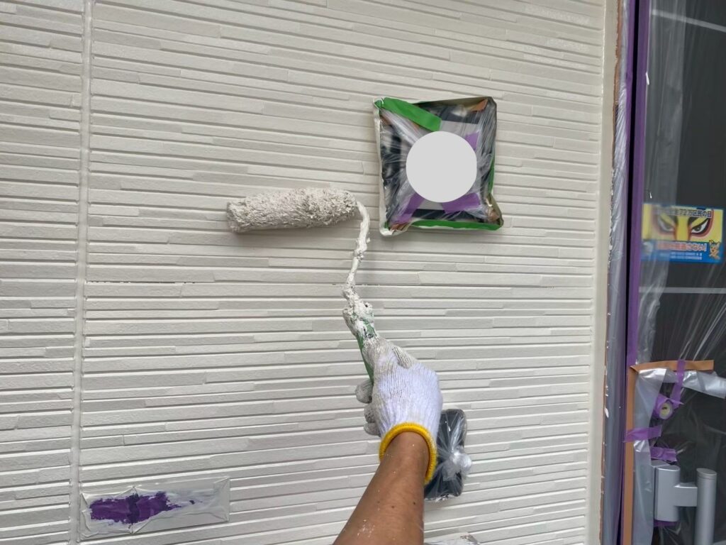 サイディング面の下塗り材はエスケー化研/水性SDサーフエポプレミアムです。下地調整機能もある為、細かいクラック(ヒビ)も塞いでくれます!