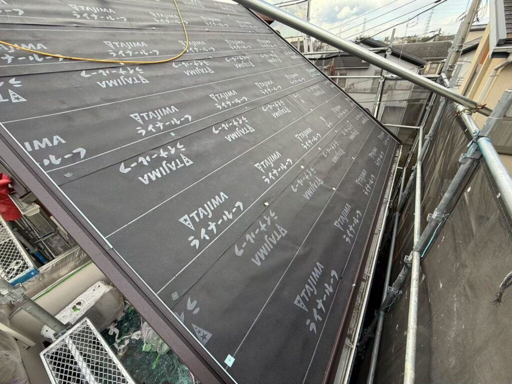 次に、防水シートを貼っていきます! 使用したルーフィングは、田島ルーフィング/ニューライナールーフィングです。