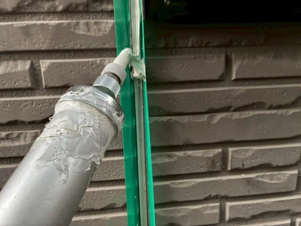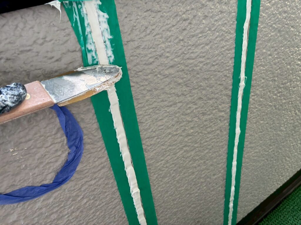 今回の工事で使用したコーキング材は、サンライズ/SRシールH100になります。耐久年数が約30年と超高耐久・超低汚染で、柔軟性があり、汚れがつきにくい材料になります。