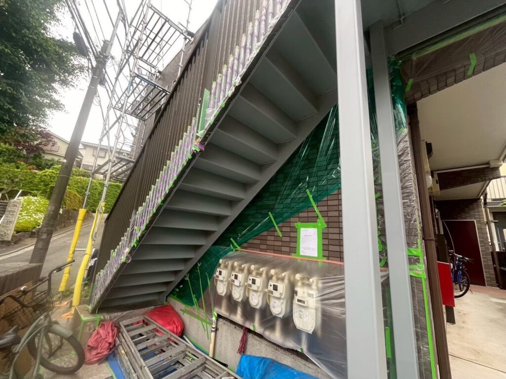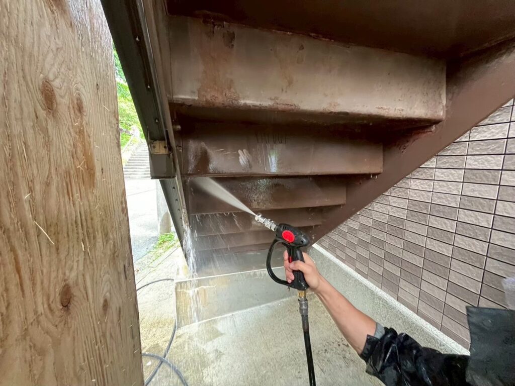 鉄骨階段改修工事施工手順(鉄部塗装工事)