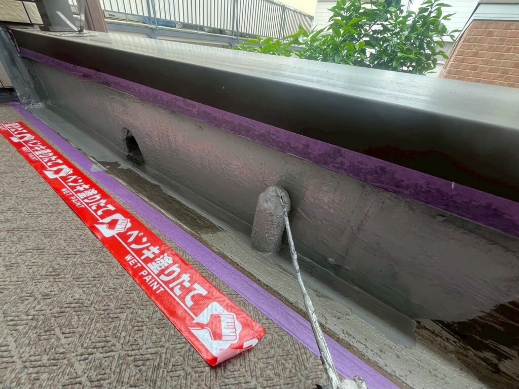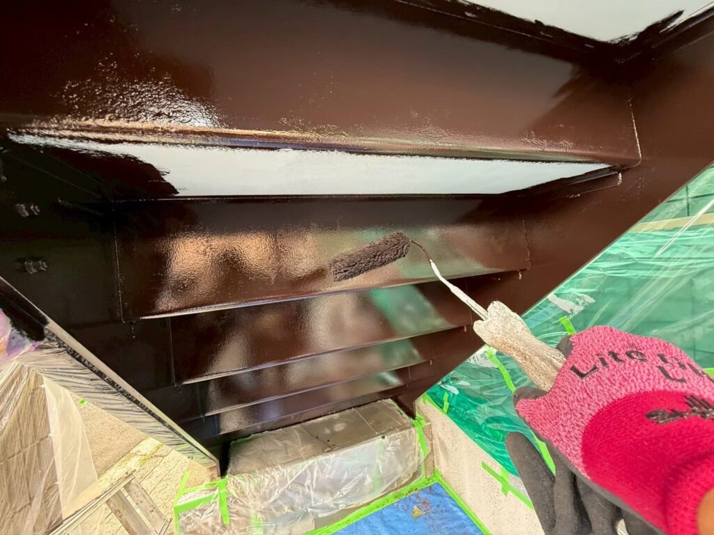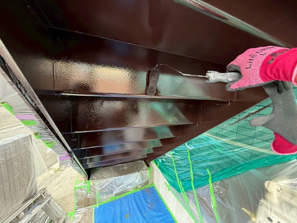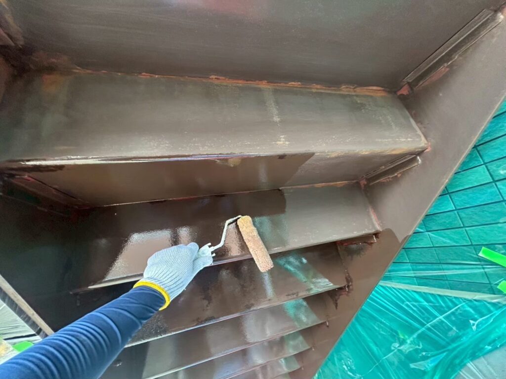 今回の鉄部塗装では、計4回塗りを行なっています! 使用した塗料は、中塗りと同じくロックペイント/ハイパーユメロックになります。