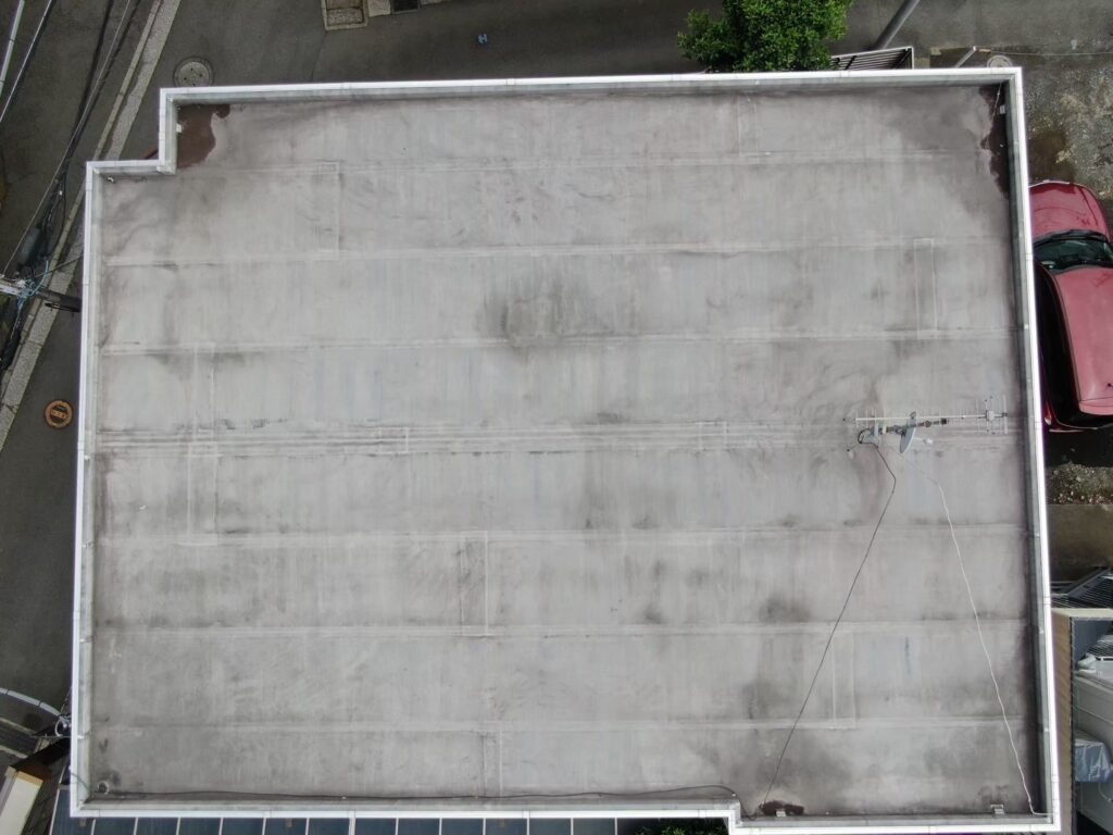 まず初めに、高圧洗浄できれいにしていきます! 汚れの上に塗布してもすぐ剥がれてしまうため、汚れを洗浄し密着性をよくします。強すぎる圧力は既存の防水層を痛めてしまうので、慎重に洗浄していきます!
