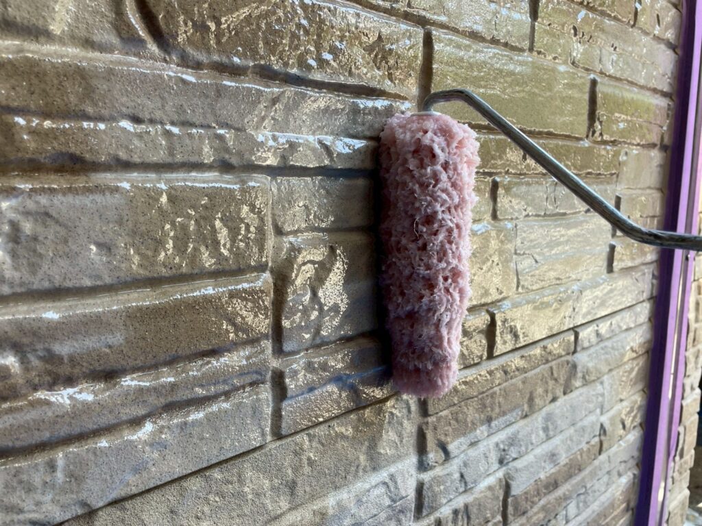 今回外壁塗装は2種類の塗料を使用しており、クリア塗装の部分は、仕上げ用塗料での2回塗りしか行わず、下塗りの工程がありません。