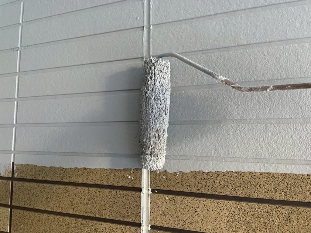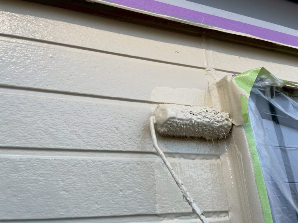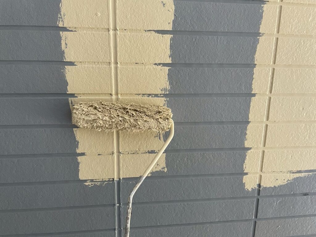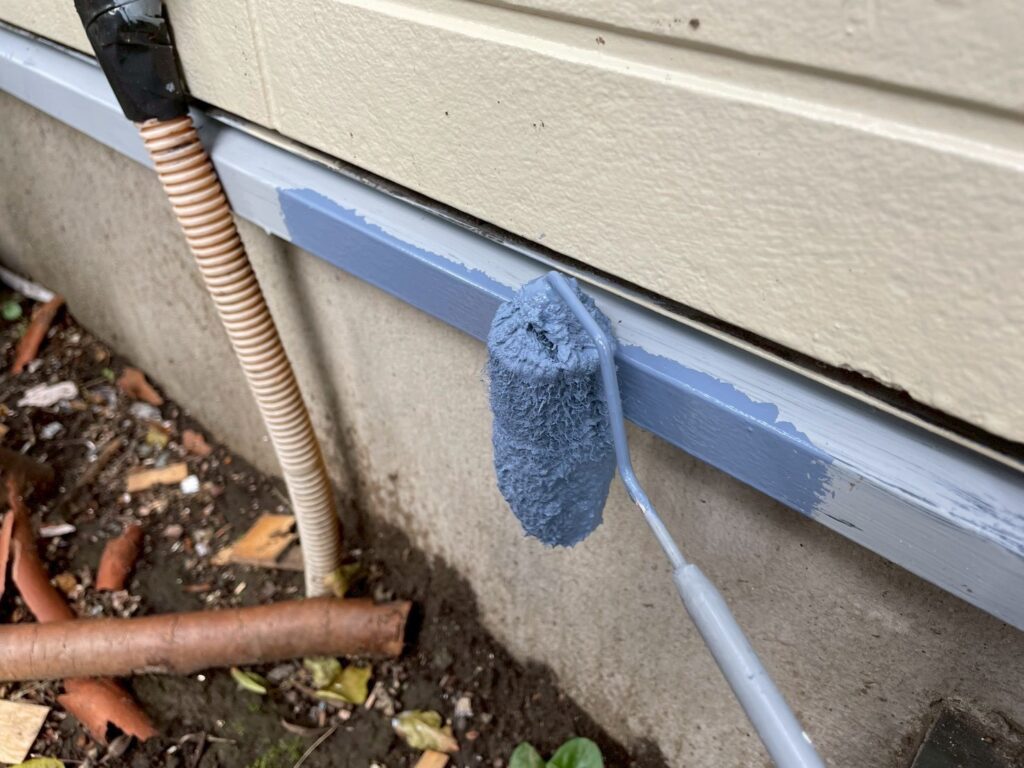 今回外壁塗装は2種類の塗料を使用しており、クリア塗装の部分は、仕上げ用塗料での2回塗りしか行わず、下塗りの工程がありません。