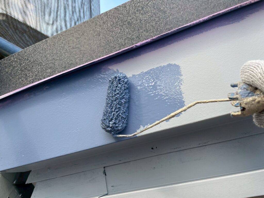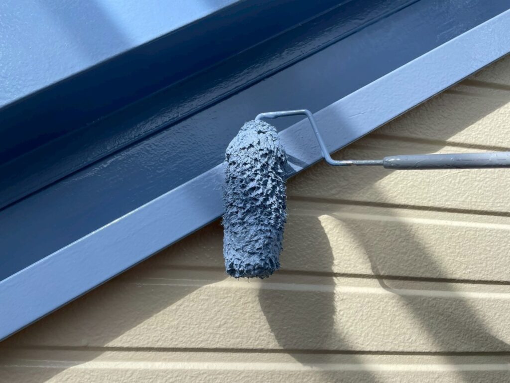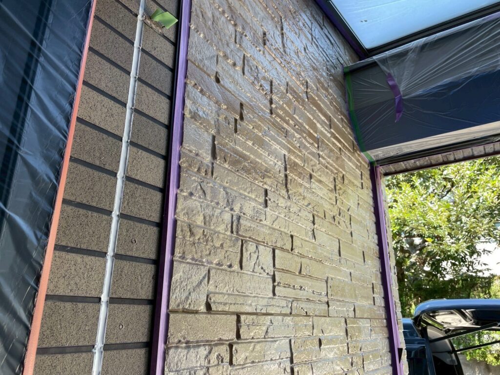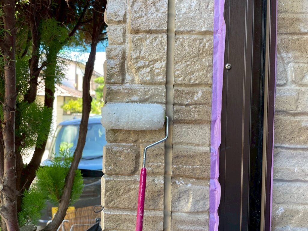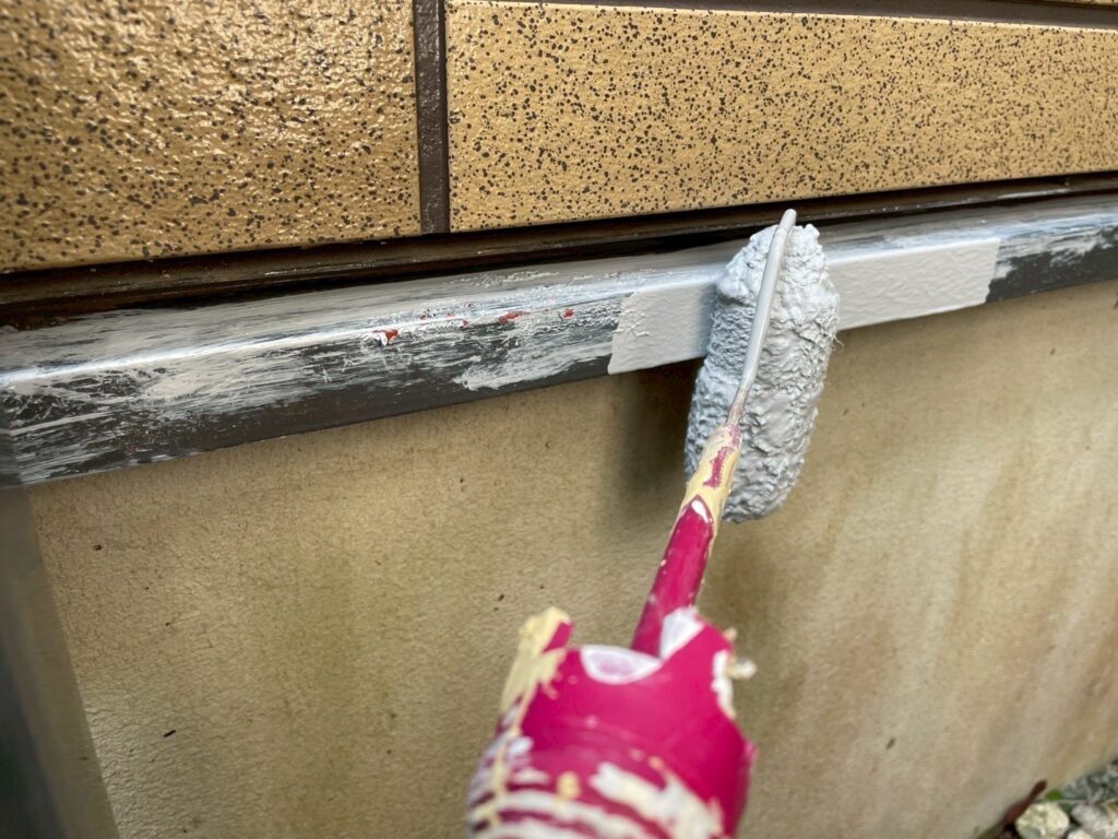 今回外壁塗装は2種類の塗料を使用しており、クリア塗装の部分は、仕上げ用塗料での2回塗りしか行わず、下塗りの工程がありません。